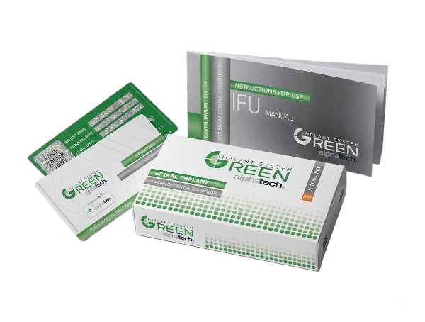 Each GreenAlphaTech implant is assigned with a unique serial number that allows tracking the history of the product manufacturing from the first to the final stage. GreenAlphaTech Implants GmbH offers a voluntary lifetime warranty for its dental implants, in accordance with the conditions outlined in the Warranty Policy. Each implant includes Warranty Card, Product certificate and manual for the patient.