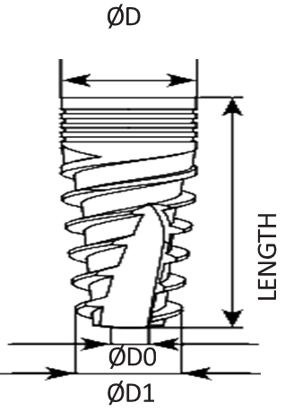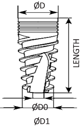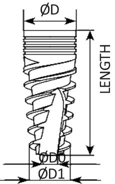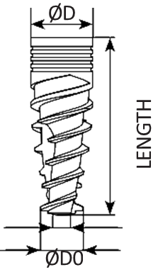 | IMPLANT | DIAMETER (Ø) | Ø D1 | Ø D2 | LENGTH (mm) | CAT NO |