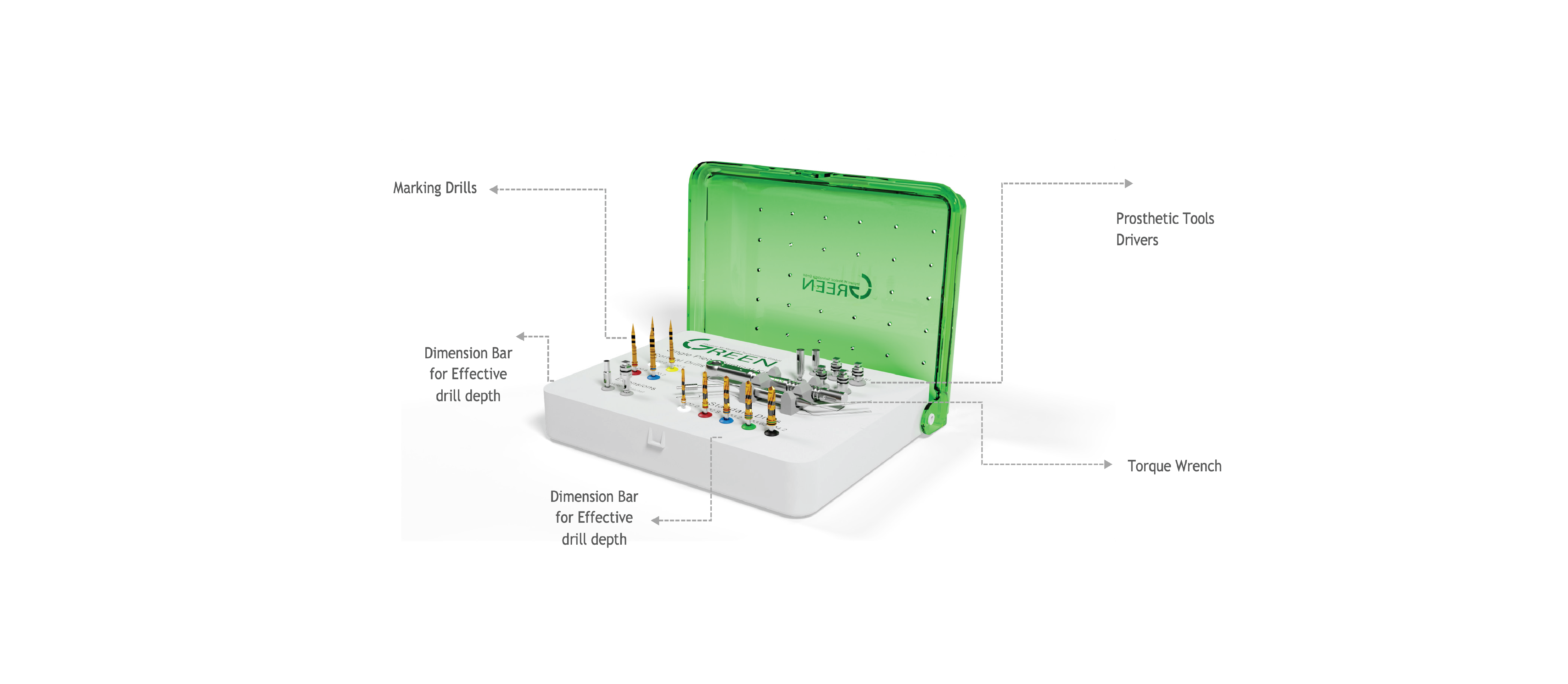 We present an inclusive portfolio of surgical kits customized in size & content to include all tools needed for most clinical procedures. All drills and tools are compatible with GreenAlphaTech implant systems.
